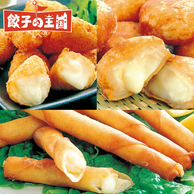 【チーズトリオ】3つの形が楽しい!チーズ入りポテトもち、カマンベールフライ、チーズスティック[餃子の王国]